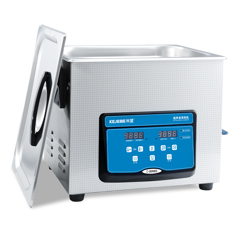 产品型号:KM-410C 内胆材料:SUS304不锈钢冲压槽 震头数量:4枚 容量大小:10 L 超声频率:40KHZ 超声功率:240W/120W 加热功率:200W 时间控制:数显1-30分钟 温度控制:常温-80°C 内槽尺寸:300 x 240 x 150 mm 外形尺寸:325 x 265 x 280 mm 电源电压:AC 220~240V, 50/60Hz 其他功能:脱气、变波
