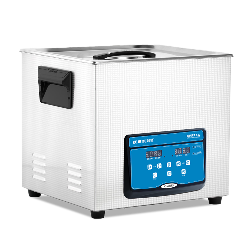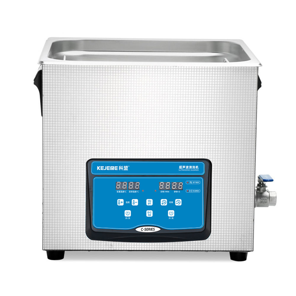 产品型号:KM-820C 内胆材料:SUS304不锈钢冲压槽 震头数量:8枚 容量大小:20 L 超声频率:40KHZ 超声功率:480W/240W 加热功率:300W 时间控制:数显1-30分钟 温度控制:常温-80°C 内槽尺寸:330 x 300 x 200 mm 外形尺寸:400 x 330 x 300 mm 电源电压:AC 220~240V, 50/60Hz 其他功能:脱气、变波